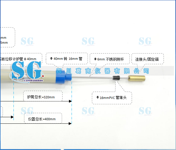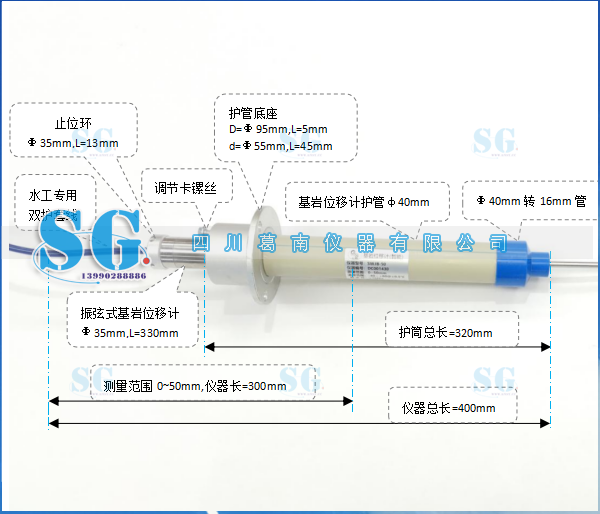 振弦式基岩位移计的传感器采用的是SWD型振弦式位移计,由其加装配套附件而组成,振弦式基岩位移计具有参数识别功能。