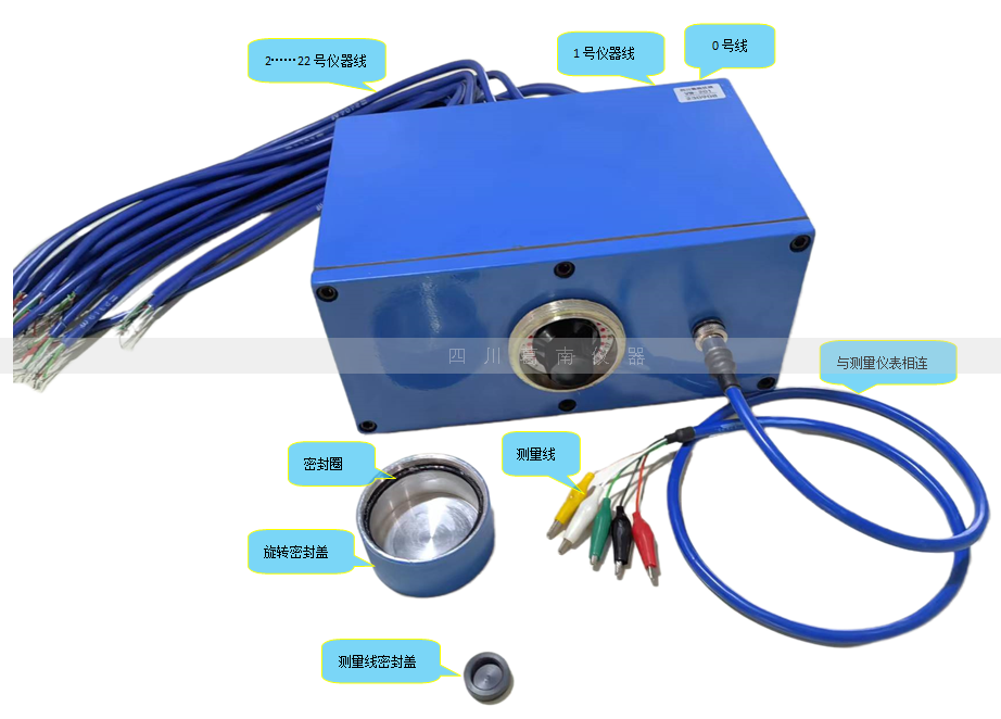 VW-201型手动集线箱单台使用可连接23支传感器,多台串联使用可连接22支传感器。串联使用时第23点连接下台集线箱的测量点。