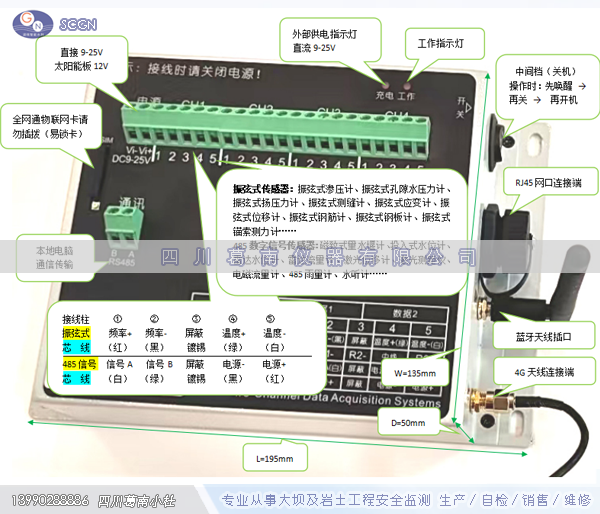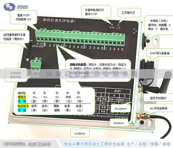 MCU-4X型自动化采集设备所有CH通道万用,兼容性良好,允许不同品牌,不同信号输出类型的仪器同时混合接入同一个模块,如差阻式/振弦式/电压式/电流式等模拟信号传感器,以及数字式智能型与开关量计数式传感器均可同时接入。