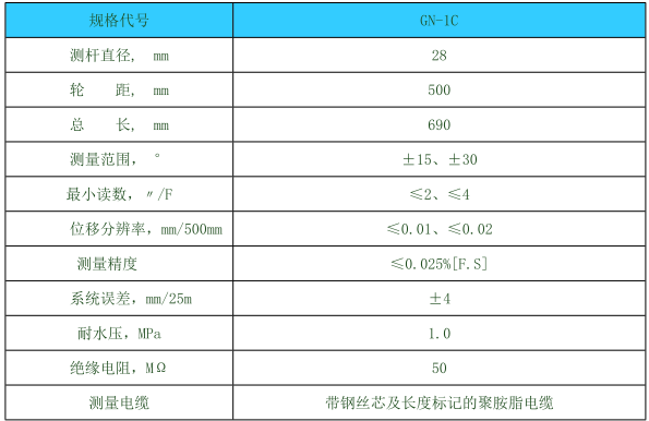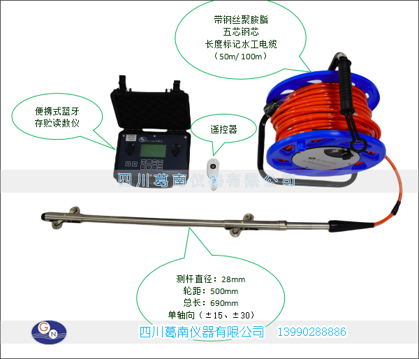 GN-1C型活动式测斜仪采用了耐冲击型倾斜传感器,电缆为带承载钢芯表面镶有标尺的聚胺脂电缆。