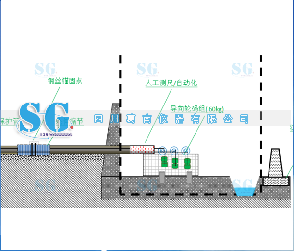 钢丝水平位移计安装示意图: