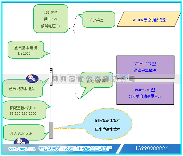 (1)投入式水位计用于测库水位、孔水位、测压管水位,不受边坡坡比影响;