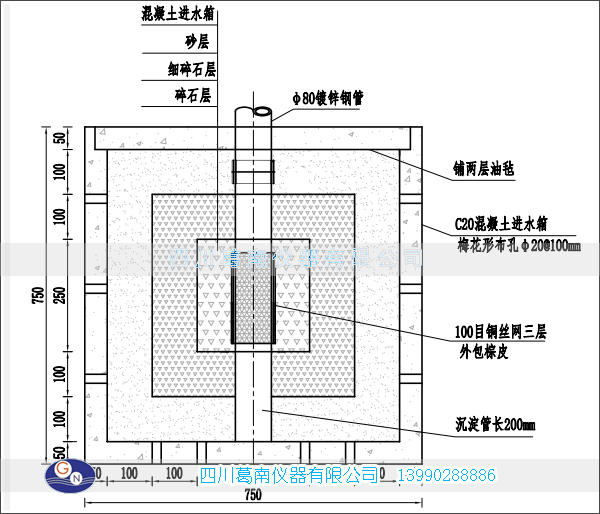 透水孔工艺 | 透水箱:梅花形布孔 φ20mm@100mm 透水段:600mm φ5mm @8 |