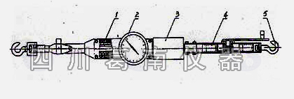 结构:弹簧、百分表、调节螺母、钢尺、挂钩等部件组成,