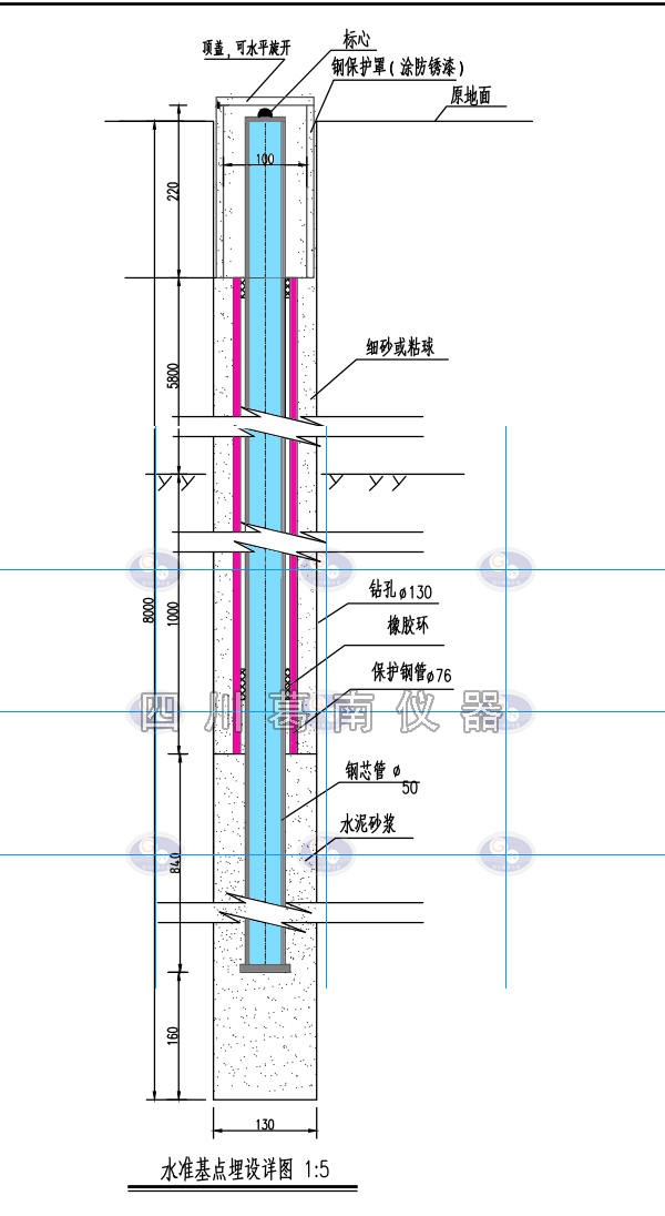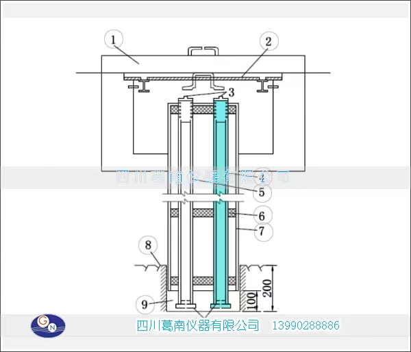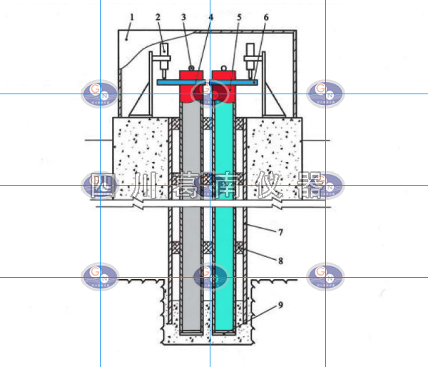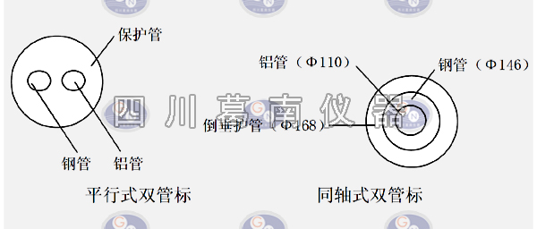 双金属管标装置主要由保护罩、测读仪器( 位移计或测量器具)、水准标志(金属标芯头)、钢管、铝管、孔口装置、保护管、支撑环、底盖等组成。