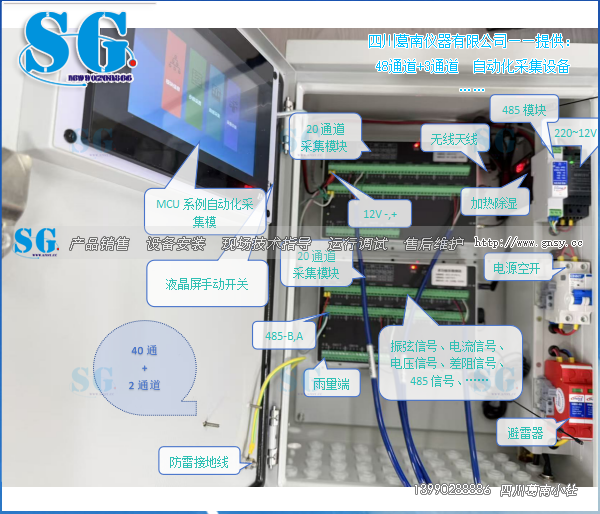 4、箱内配置:每个自动化采集仪箱中含2个数据采集智能模块;单模块采集通道不少于20个,可测物理里不少于40个。
