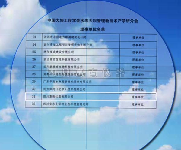 2018年8月14日,四川葛南仪器有限公司列入中国大坝工程学会水库大坝管理新技术产学研分会理事单位成员。