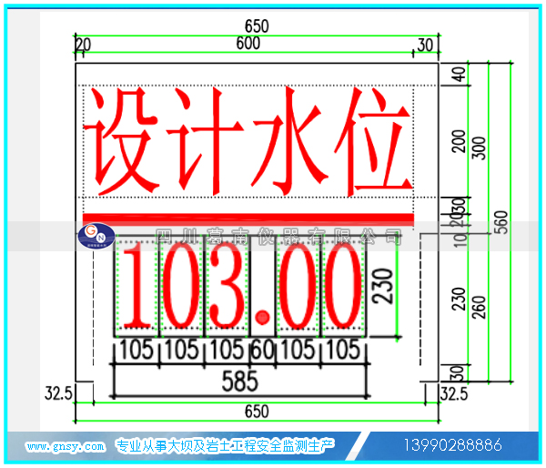 (4)E字型标尺牌规格为2348x700X1.5(不锈钢整块),水位特征牌650x560(不锈钢整块)。