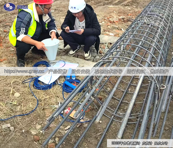 现场安装简述:第一步,产品进场验收(产品现场报验、依设计图要求逐项检验);第二步,对照设计图产品安装位置,进行产品安装。产品初值测试、焊接钢筋计、固定应变计组、安装无应力计;第三步,仪器管线延伸保护;第四步,仪器安装钢筋笼吊装;第五步,灌装混凝土。第六步,三小时后监测、6小时后监测、12小时后监测、24小时后监测……