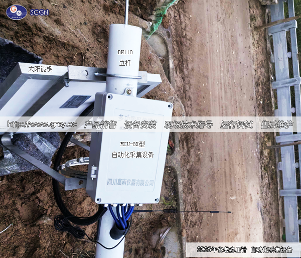 2025年11月,新疆某横卧河道倒虹吸管身段渗流监测,主要安装SWP型渗压计、MCU-8X自动化采集设备,通过太阳能供电系统供电;对河道梯道埋设管段渗流情况实时监测。