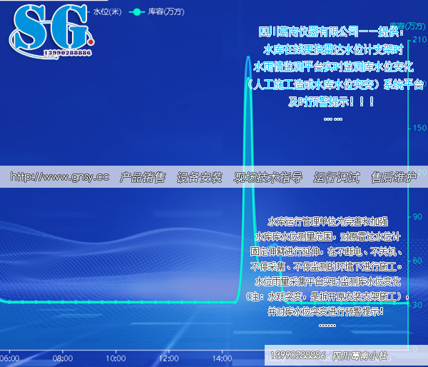 水位雨量采集平台实时监测库水位变化(注:水跃突变,是拆开原安装支架施工),并对库水位突变进行预警提示!