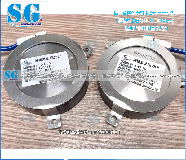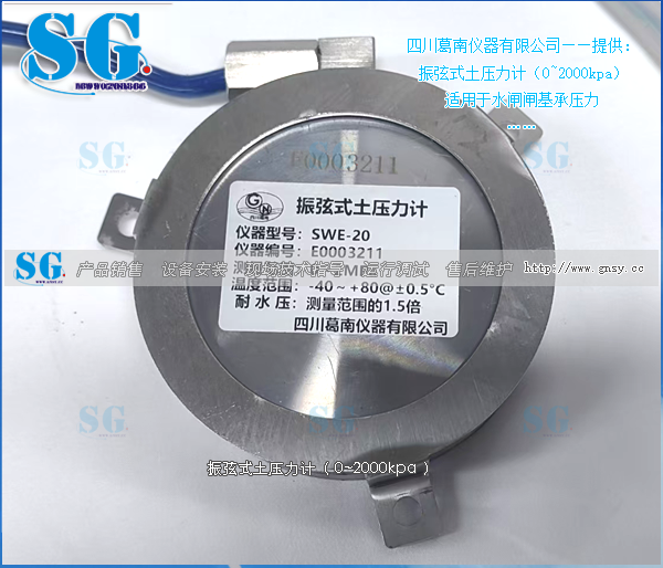 SWE型振弦式土压力计适用于水闸闸基承压力。安装在闸基土体与混凝土接合部位,是了解被测结构物内部土压力变化的有效监测设备,并可同步测量埋设点的温度。振弦式土压力计结构简单,测值稳定,方便安装在需要长期监测土类物质压应力的任何场合。振弦式土压力计具有参数识别功能。