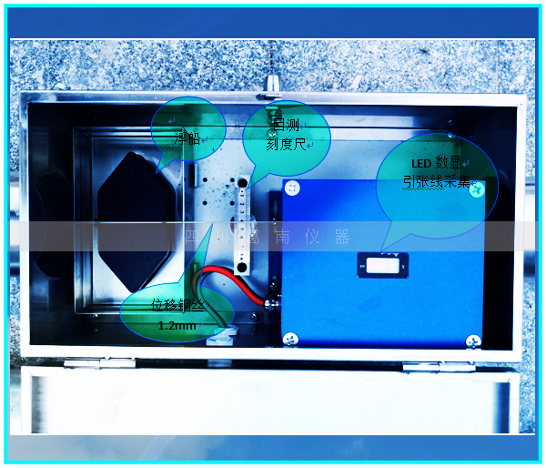 引张线测点装置由浮船、读数尺、数显引张线仪和保护箱组成。