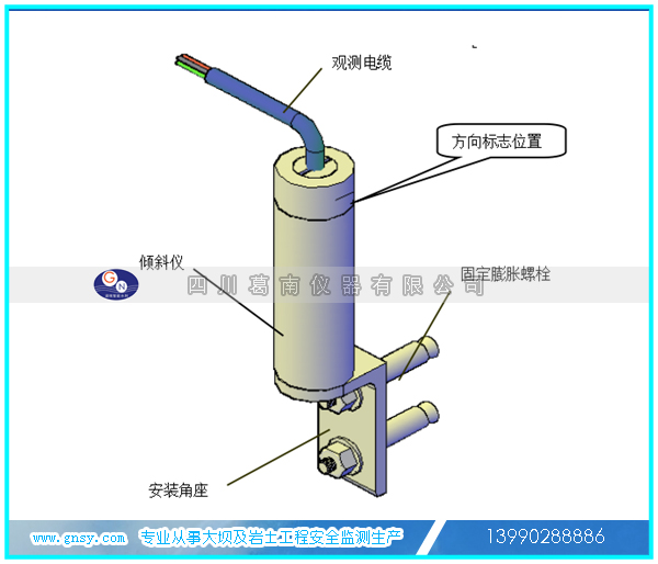 产品结构:SN-1X型倾斜仪由倾斜传感器、安装支架、观测电缆等组成。