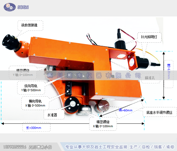 CG-2A垂线观测仪采用光学成像。产品尺寸:长300mm,宽120mm,高60mm。