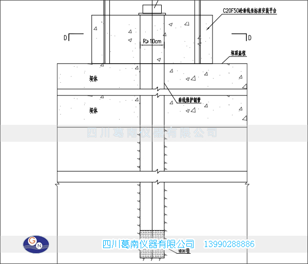 倒垂线结合基点墩作为水平位移监测基准时,倒垂线支架固定墩体应与基点墩基础一体化浇筑,且倒垂线锚固端应深入至蓄水影响深度以下。
