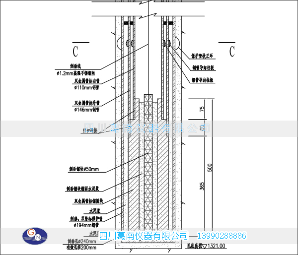 正垂护管、倒垂护管、双金属护管都采用无缝钢管组成,管径φ100<无缝管径≤φ218mm,壁厚≥φ5mm,专用公母丝扣。