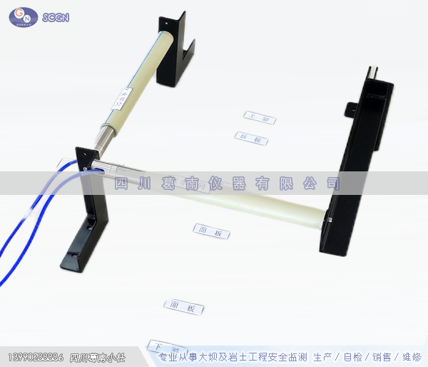 两向即双向测缝计用于测板缝垂直水流向张开度、面板铅直方向沉降错位量。两向测缝计主要用于测量裂缝的开合度和缝两侧平面向错动,采用双向支架安装,可测缝两侧平面相对沉降。