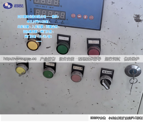 某水库放水闸PLC自动化控制设备安装实例:小型水库卷扬式放水闸闸门启闭时,对闸门的钢绳荷载、闸门开度、电源控制、启闭(开、关、停)、电机控制等进行本地/现地/远程等自动化控制和操作。