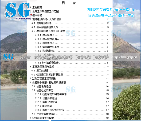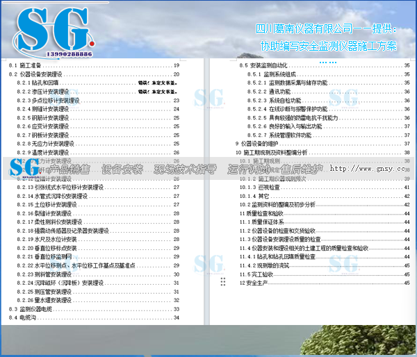 安全监测仪器施工方案:安全监测仪器设备的采购运输、检验率定、保管、安装、埋设、调试、电缆敷设及相关的钻孔等土建工程、施工期观测、变形监测控制网建设、设备维护、监测资料整编及分析、自动化集成与调试、巡视检查等所有相关工作及工程完工前各阶段的资料整理、整编、月报及初步分析、完工验收及配合、监测设施移交及人员培训、为运行单位接收监测工作提供必要的条件等。